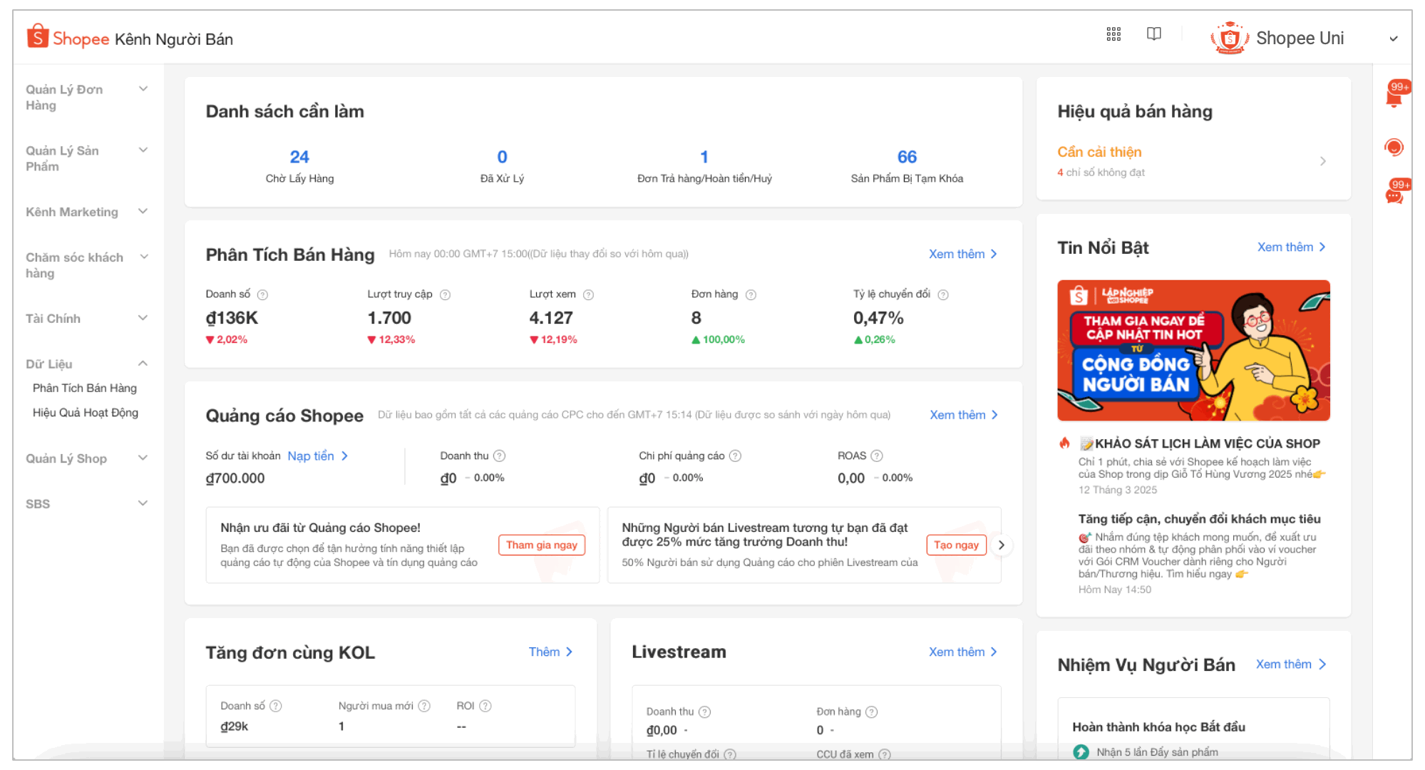 Năm 2025, Shopee đang không ngừng tối ưu trải nghiệm Kênh Người Bán với nhiều công cụ marketing mạnh mẽ, từ thu hút người mua mới, tăng giá trị đơn hàng đến giữ chân khách hàng cũ. Để tối đa hóa hiệu quả, nhà bán cần: